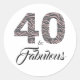 Sticker Rond 40 Fabuleux 40e anniversaire Silver Pink Black Zeb