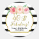 40 et fabuleuse fête d'anniversaire privilégient les étiquettes autocollantes avec rayures noir et blanc, texte or et fleurs d'aquarelle rose.