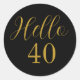 Design élégant autocollant noir et or 40e anniversaire design. Ce design typographique moderne est en noir et or chic. Il a le texte "Hello 40" dans la typographie tendance. Ce design élégant est parfait pour une célébration inoubliable du 40e anniversaire. Si vous avez besoin d'aide pour la personnalisation, la mise en correspondance de produits ou pour un design personnalisé, contactez-moi par zazzle conversation ou email : ursuladawnmoon@gmail.com