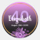 sticker glamour pour un 40ème anniversaire avec élégant et moderne noir et rose, dégradé violet, fond sombre. Avec un cadre en faux or, et des fleurs à l'eau couleur violet et violet. Modèles pour nom, âge et date, lettres blanches et violettes.