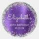 Ces stickers chic de 40ème anniversaire (ou n'importe quelle année) présentent un arrière - plan en métal brossé violet avec une bordure en parties scintillant argent glam. Personnalisez-les avec le nom de l'invitée d'honneur en écriture manuscrite blanche, ainsi que son anniversaire et sa date en caractère sans serif.
