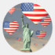 Célébration imaginaire avec Statue de la Liberté et ballons de drapeau en forme de Coeur.