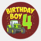 Sticker Rond 4e anniversaire garçon 4 ans ferme camion tracteur