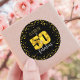 Sticker Rond 50 et fabuleux anniversaire chic feuille d'or poin