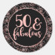 50 Et Fabuleux élégant 50e Anniversaire Rose Gold Classic Round Sticker. 50 et fabuleux élégant 50e anniversaire parties scintillant rose or sur arrière - plan noir.