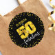 Sticker Rond 50 fabuleux anniversaire noir feuille d'or points