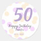 Sticker Rond 50th birthday add name date purple orange polkadot