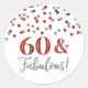 Sticker Rond 60 et fabuleux Confetti rouge argent d'anniversair