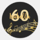 Sticker Rond 60e anniversaire de la musique or notes sur élégan