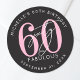 Celebrate in style with this modern round sticker design, perfect for a “Sixty and Fabulous” birthday celebration or any milestone event. The center features a large pink “60” with the word “sixty” in elegant white script layered over it, and “fabulous” just below in bold white sans serif font for a sleek, modern look.