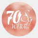 70 alors quel Sticker Rose Gold Metal 70e Anniversaire. Drôle et inspirant dire 70 alors ce qui est dans le script blanc sur un arrière - plan rose métallique or. Parfait pour une personne qui a le sens de l'humour. Vous pouvez modifier le numéro d'âge.