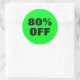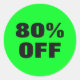 80% de réduction néon vert marque bas autocollants pour les promotions de vente en magasin. Étiquettes de réduction de prix promotionnels ronds brillants pour les entreprises de détail. Ajoutez votre propre valeur de pourcentage personnalisée et des couleurs arrière - plans. do-it-yourself matériel de marketing pour les magasins, l'entreprise, les points de vente, les événements, les offres spéciales, l'envoi de promo, les escompteurs, la vente de garage, etc. Exemple de modèle vert et noir. Aussi pratique comme scellés d'enveloppe.