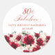Ajoutez une touche spéciale à votre fête d'anniversaire avec cet élégant autocollant rond 80 & Fabulous anniversaire. Il est doté d'une bordure florale couleur aquarelle rouge rose et pivoine rose le long du fond. Les feuilles vert foncé lui donnent une ambiance botanique rustique. Fabulous est écrit dans un magnifique script classique. Ajoutez une touche personnelle au nom et à l'anniversaire du célébrant d'anniversaire ci-dessous. Cet article fait partie de la collection Red Rose Pink Peony. Il contient des modèles d'invitation professionnels, des panneaux d'accueil personnalisés et des fournitures de fête.