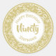 Sticker Rond 90e anniversaire Numéro Motif Or et blanc