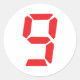 Sticker Rond 9 neuf réveil rouge numéro numérique