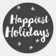 Happiest Holidays Black Script Round Sticker est conçu pour accompagner notre collection "plus heureux vacances". Consultez notre magasin pour trouver les articles correspondants. Ce design est simple et moderne, en utilisant une police de calligraphie à la main pour les "vacances les plus heureuses".