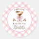 A Tini One Is On The Way Baby Shower Classic Round Sticker | Espresso Martini Theme with Pink Bow