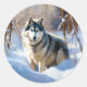 Sticker Rond Aaskan Malamute Laisser Il Neige Noël
