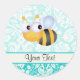 Sticker Rond Abeille mignonne ; modèle Damas Turquoise