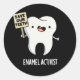 Sticker Rond Activiste Enamel Funny Dental Tooth Pun Dark BG