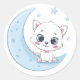 Sticker Rond Adorable Kitty au-dessus de la lune