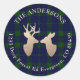Sticker Rond Adresse de Deep Forest Plaid Golden Deer