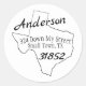 L'étiquette d'adresse de retour de style texan contient votre nom de famille en écriture de script moderne, inclus dans le contour texan est votre adresse de retour.
