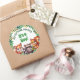 Adventure Attend. C'est un autocollant de baby shower Garçon avec un thème de Créatures de Bois avec un raton laveur mignon, écureuil et renard dans un style de dessin animé mignon entouré de bois magiques et de feuillage de fougères.