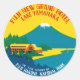 Grand étiquette d'affiche de voyage pour Fiji Grand Hotel avec l'hôtel sur le lac avec des montagnes enneigées dans l'arrière - plan.