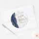 Sticker Rond Agate Marine Blue Gold Script Mariage en marbre