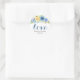 Aimer Script Aquarelle Bleu Jaune Floral Classique Sticker Rond