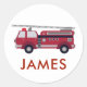 Sticker Rond Ajouter votre nom Red Fire truck Personnalisé