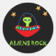 aliens rOcK ! est un dessin d'art fantastique avec un alien kEwL flottant dans l'espace parmi les étoiles. Ce petit gars de l'espace ressemble à EwL sur un autocollant !