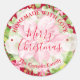 Joyeux autocollants ronds personnalisés de Noël avec des fleurs d'hiver modernes et élégantes et un poinsettia rose avec votre nom et votre salutation en lettres chic. Tout le texte, les polices, les couleurs de police peuvent être modifiées, il suffit de cliquer sur le lien "customiser plus loin". CORRESPONDRE des articles dans notre magasin.