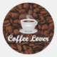 Sticker Rond Amateur de café, Coupe blanche/haricots Brown