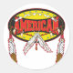 Logo autochtone sportif en rouge et jaune avec plumes suspendues