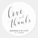 Sticker Rond Amour et Merci Noir Blanc Élégant Mariage Faveur