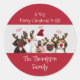 Pour les Amoureux de les chiens et ceux qui aiment rire ! Un autocollant rond amusant avec un texte : Un très joyeux Noël à tous, et votre nom de famille. Conçu avec 5 chiens mignons portant un nez rouge festif et des Antlers de rennes. Pour personnaliser, il suffit d'insérer votre nom de famille dans notre modèle facile, en remplaçant l'exemple de texte. Idéal pour les envois de cartes de Noël, les forfaits ou n'importe où. Bon appétit !