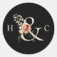 Sticker Rond Ampersand floral élégant mariage Monogramme noir