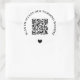 Site mariage QR code autocollant en noir et blanc avec texte incurvé et un coeur noir. Baguette de code QR en mariage noir et blanc.