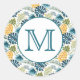 Sticker Rond Ananas bleu paume feuille feuillage blanc monogram