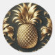 Sticker Rond Ananas Tropical Noir & Or Luxueux Mariage