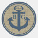 Le style nautique de l'ancre bleue en bleu marine sur l'aspect rustique du burlap. Autocollant mariage à thème océan ou plage, "Ancré avec amour".