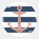 Sticker Rond Ancre d'or rose Bandes marines nautiques