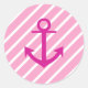 Sticker Rond Ancre Fuchsia Nautique Rose Et Blanc