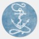 Sticker Rond Ancre nautique Aquarelle Bleu Océan marin