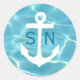 Ajoutez une touche finale à vos invitations à la piscine ou à votre décor de fête avec ces autocollants personnalisés. Une ancre nautique blanche est centrée sur une photo d'eau d'eau d'eau d'eau d'eau vive au soleil. Customisez le design en ajoutant vos propres initiales en utilisant les modèles faciles fournis. Si vous le souhaitez, retirez le monogramme en laissant les zones de texte vides.