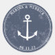 Les autocollants ronds marins (ou scellés d'enveloppe) comportent une ancre et un texte blanc sur un arrière - plan bleu marine patiné. Personnalisez avec les noms et la date. Parfait pour les mariages, enregistrez les annonces de date et de fiançailles, les faveurs, les douches et les célébrations d'anniversaire.