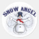 Un bonhomme de neige fait un ange de neige dans la neige. Texte bleu Ange de neige.