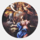 Image d'anges et de chérubins tenant la coupe d'or pendant que Jésus avec les bras tendus regarde vers eux. La peinture a lieu dans le jardin de Gethsémani. Art vintage pour Eastertime. Sebastiono 18ème siècle.